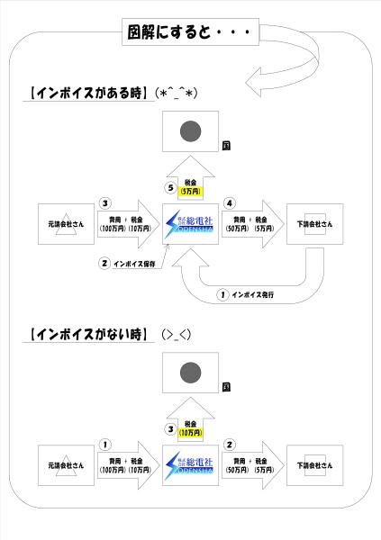 朝夕が冷え込み、肌寒くなってきましたが日々のお仕事お疲れ様です。図面作成担当の野口です。皆様は、「適格請求書保存方式(インボイス制度)」をご存じでしょうか?この制度は、令和5年10月1日から開始されるため、これから目にしたり、耳にする機会が増えてくるのではないでしょうか。「適格請求書保存方式(インボイス制度)」とは、買い手が”仕入税額控除”を受けるために、売り手である登録事業者から交付を受けた「インボイス(適格請求書)」を保存しておかなければならないという制度です。・・・よく分からないですよね(*_*)総電社で説明すると、、、元請会社さんから仕事を発注して頂いた時に、インボイスを発行することができれば、元請会社さんは、仕入税額控除を受けることができ、発行できなければ、その控除を受けることができないということです。「仕入税額控除」とは、顧客から預かった消費税額から、仕入先に支払った消費税額を差し引いて国に納めることです。例えば、元請会社さんから「費用(100万円)+税金(10万円)」を受け取り、下請会社さんに「費用(50万円)+税金(5万円)」を支払った時に、インボイスがあれば、「受け取った税金(10万円) ― 支払った税金(5万円)」となり、国に納める税金は5万円となります。しかし、インボイスがなければ、控除を受けることができないため、「受け取った税金(10万円) ― 支払った税金(0円)」となり、下請会社さんに5万円の税金を支払ったにも関わらず、国に10万円の税金を納めなければならないのです。そこに5万円の差額が出てきてしまします。できれば支払いたくないお金ですよね。。。このインボイスを発行するためには、登録を行えば(「適格請求書発行業者」になれば)良いのですが、この登録を行うには、課税事業者でなければなりません。そのため、現在免税事業者であれば、まずは課税事業者となる必要があります。しかし、必ずしもインボイスを発行できるようになる必要はありません。免税事業者のまま継続していくことも可能です。適格請求書発行事業者となれば、消費税の申告、納付が必要となり、手間や仕事が増えてしまいます。適格請求書発行事業者とならなければ、消費税額分の減額を求められたり、仕事を発注してもらえなくなる可能性もあります。どちらにするのか選択する必要があります。数年間は、仕入税額控除の経過措置期間が設けられていたり(50%~80%控除される)、新たに課税登録した事業者に対しての緩和措置の検討が開始されたり、少し負担が軽減される部分もあるようです。今から開始に向けて、詳細が検討され、決定していくのだと思います。新しい制度が開始するとなると、まずはその制度を知ることから始まるため、開始までは大変なことが多いですが、色々な事がより分かりやすく、より簡単になっていくと良いなぁと思います。体調を崩しやすい時期ですが、よく食べ、よく寝て、風邪・インフルエンザ・コロナに負けないで、2022年を締めくくれるよう残り1カ月を過ごしたいと思います。