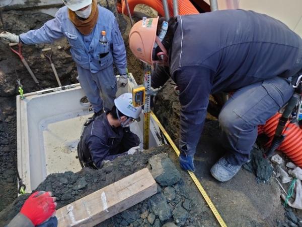 今月も無事に工事が完了しました。色々と助けて頂きました協力会社の皆様、ありがとうございました。今月は、先行工事に視点を置きました。接地極、HH据付、ラック取付など、後にでもできる作業を先行で消化し、後工事にかかる人を少しでも少なくする事が目的です。先見の明という言葉のように事が起きる前に事前に準備や予測を立て、計画的にもの事を進めて行く。これからも自社の教育に取り入れて行きたいと思います。